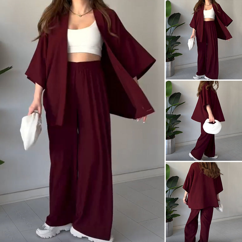 Solid Color 3/4 Sleeve Top and Pants Set