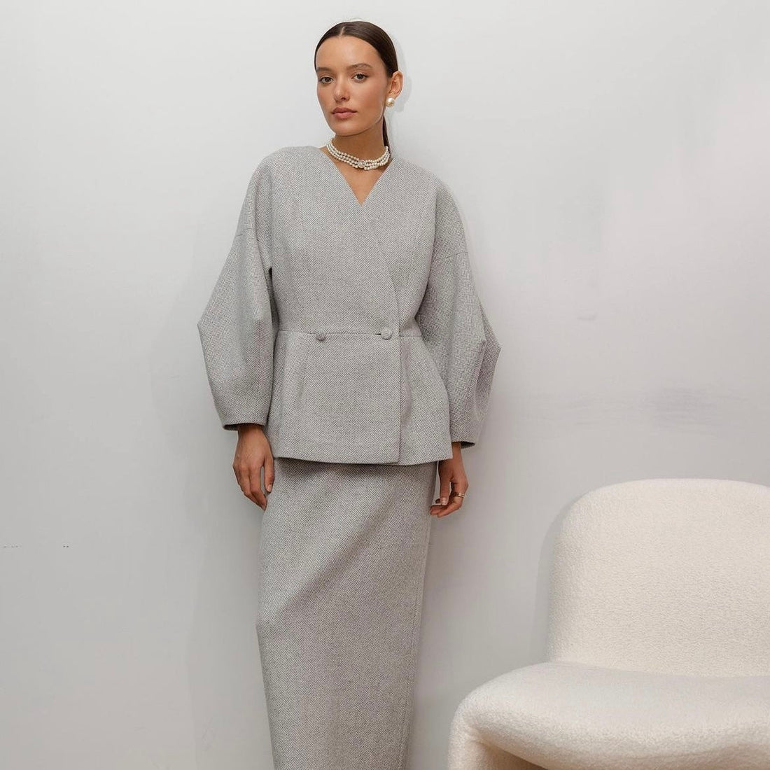 Solid Color Top And Long Skirt Elegant Suit