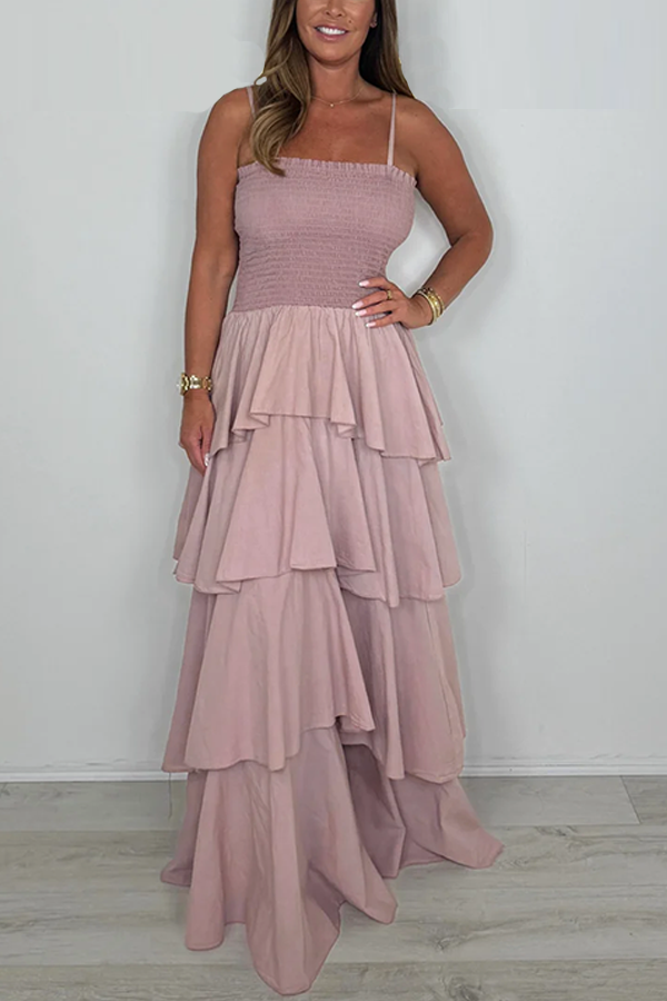 Spaghetti Strap Smocked Layered Bottom Maxi Dress