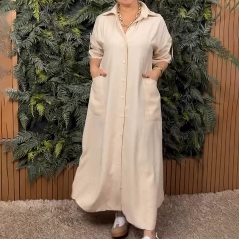 Stylish Solid Color Temperament Flared Sleeve Dress