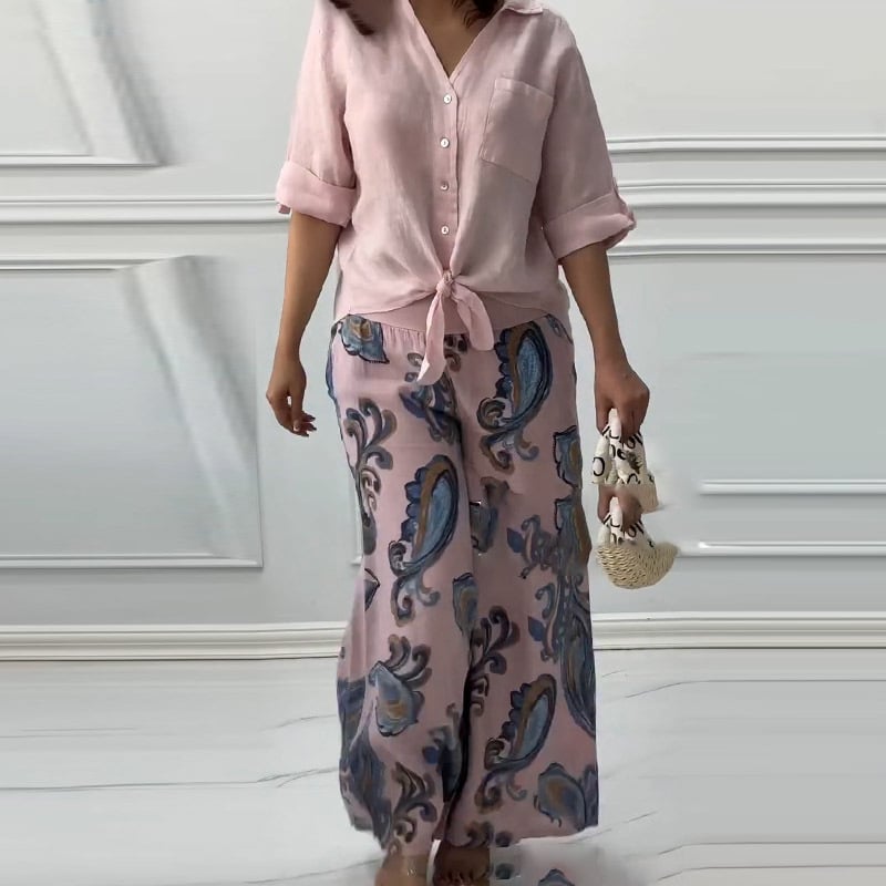 Women's Loose V-Neck Long Sleeve Top & Pants Two Piece Set