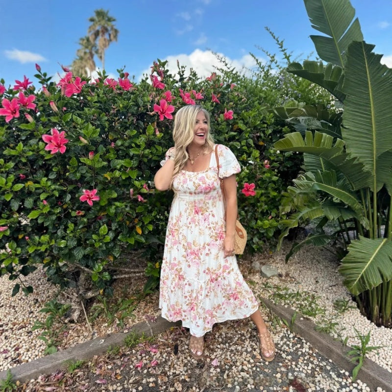 Women's Puff Short Sleeve V Neck Ruffle Tiered Flowy Boho Beach Dress