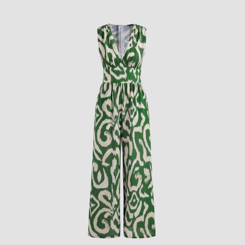 Woven V-neck Abstract Sleeveless Wide Leg Jumpsuit
