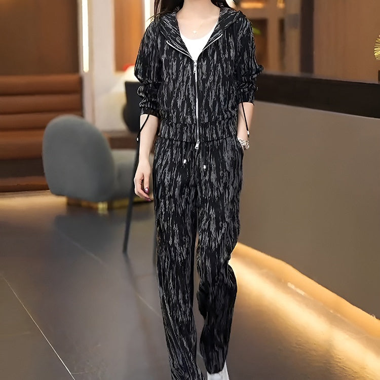 Zip-Up Hoodie Top & Pants 2-Piece Set