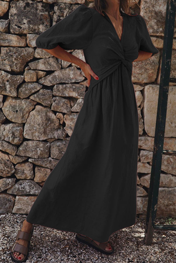 Linen Blend High Waist V-neck Loose Maxi Dress