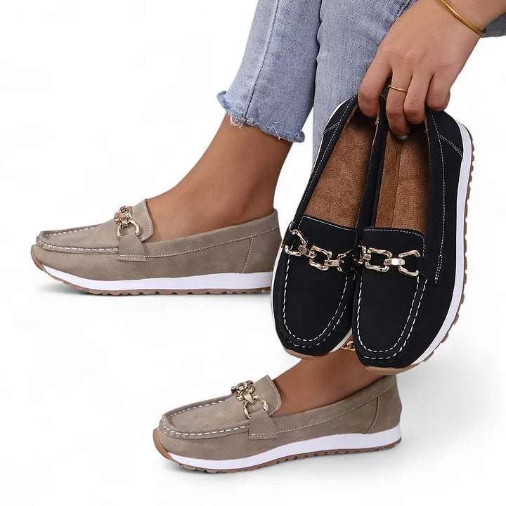 Posture Correcting Flat Loafers with Platform Sole and Chain Decor
