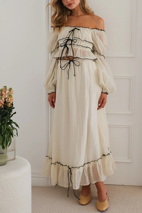 Off Shoulder Pleated Tie Top and Maxi Skirt Set