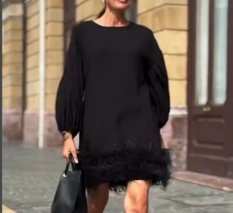 Lantern Sleeve Plush Hem Dress