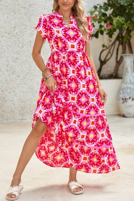 Loose-Fit Printed Short Sleeve Dress with Pockets