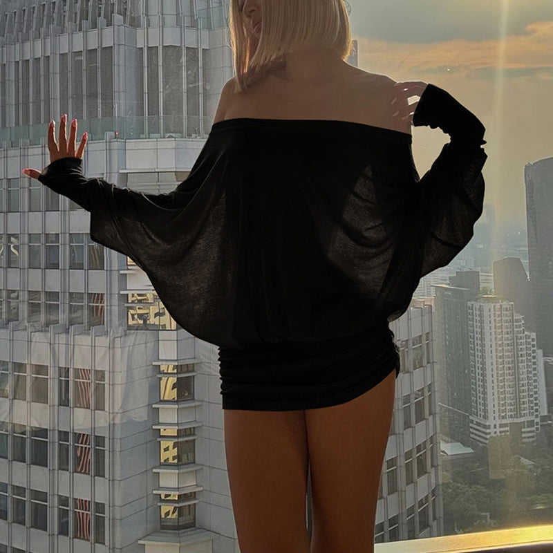 Loose Colorblocking Long Sleeve Top & Split Skirt Set