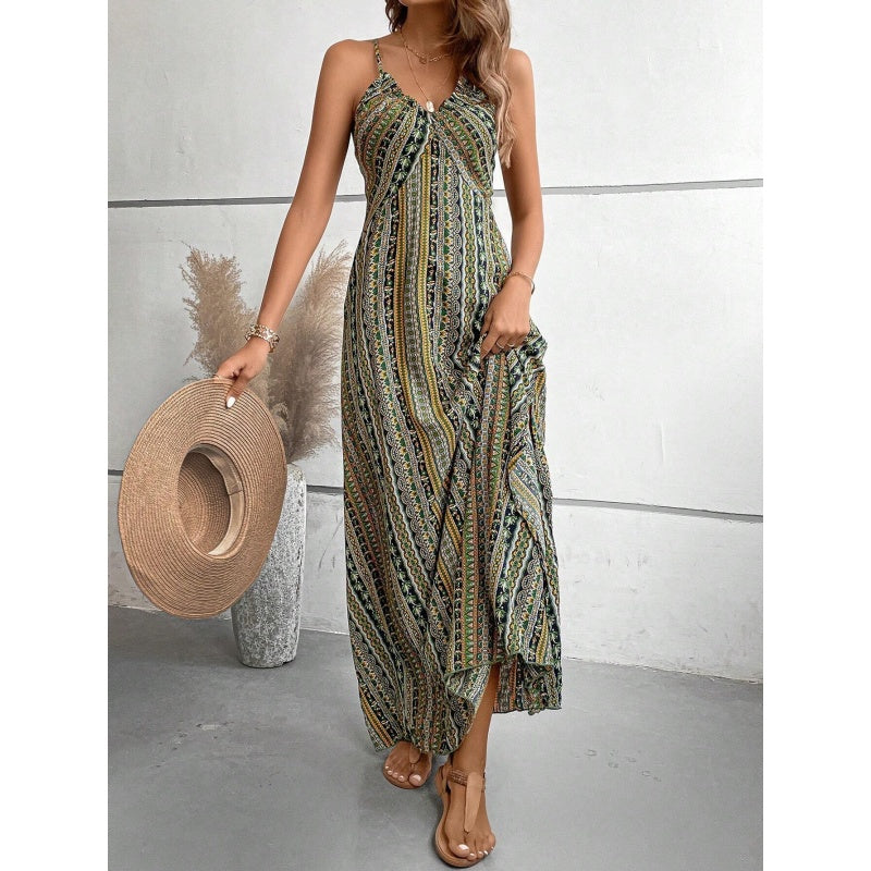 Printed Casual Boho Dress With V-Neck For Women