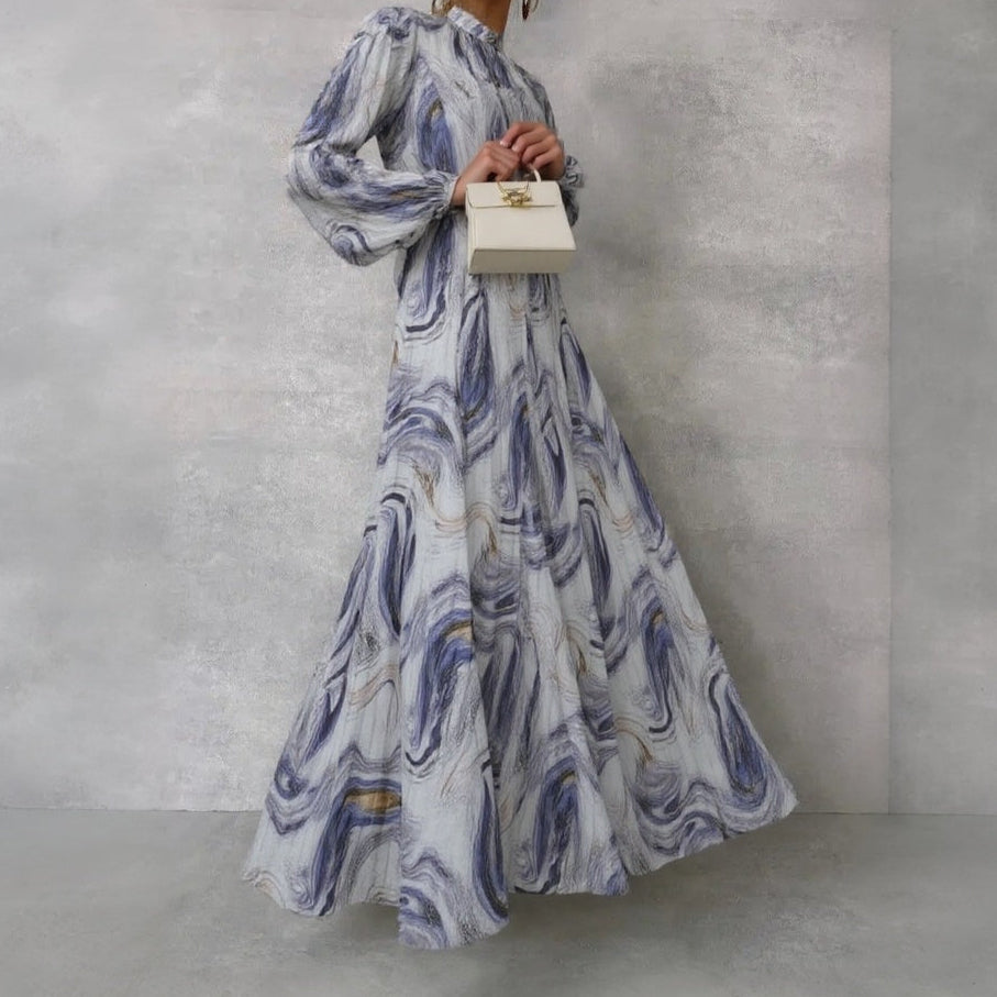 Purple Wave Printed Long Sleeves Maxi Dress