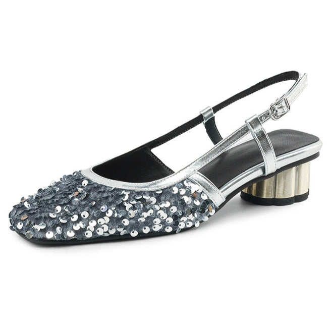 Sequins Chunky Low Heels Pumps Dress Shoes