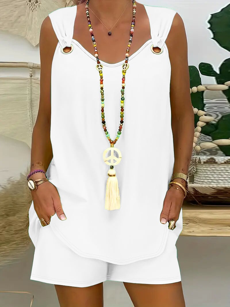 Two Piece Set With Sleeveless Tank Top And Shorts