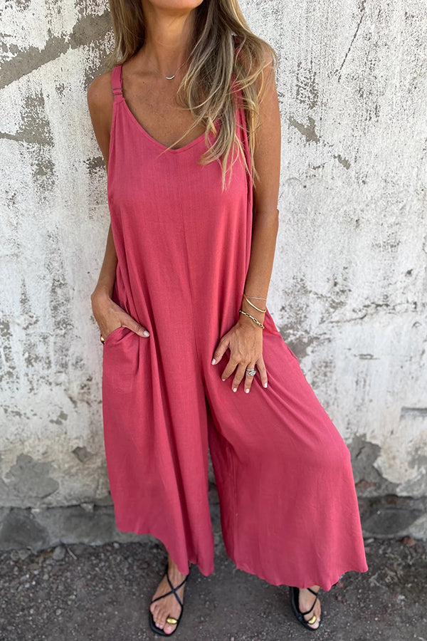 Suspenders Loose Pockets Casual Wide-leg Jumpsuit