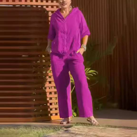 Two Piece Hooded Suit With Zipper In Cotton And Linen