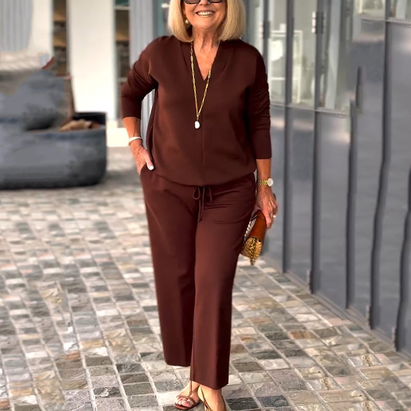 Women's Elegant V-Neck Pullover & Wide-Leg Pants