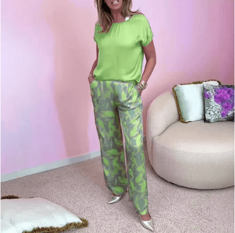 Women's Suit With Round Neckline Short Sleeves Losse Top & Wide Legs