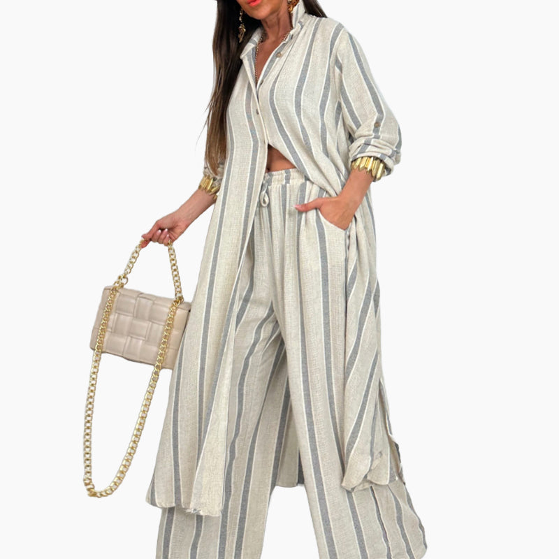 Women's Striped Sleeveless Slit Long Tops & Pants Set