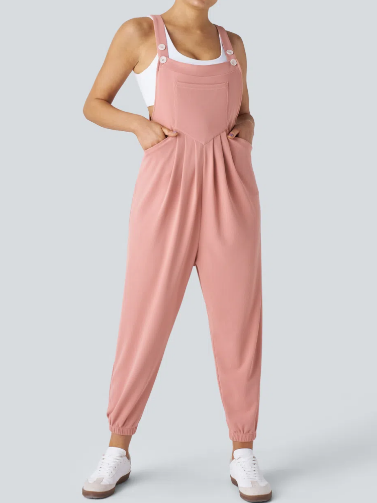 Adjustable Strap Button Multiple Pockets Plicated Waffle Casual Jogger Overalls