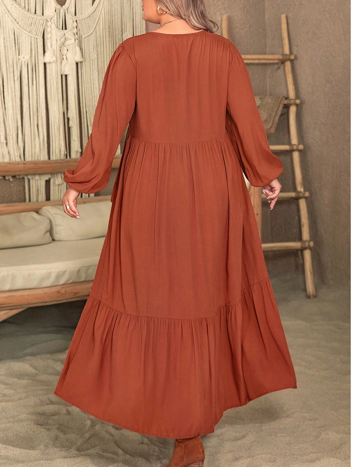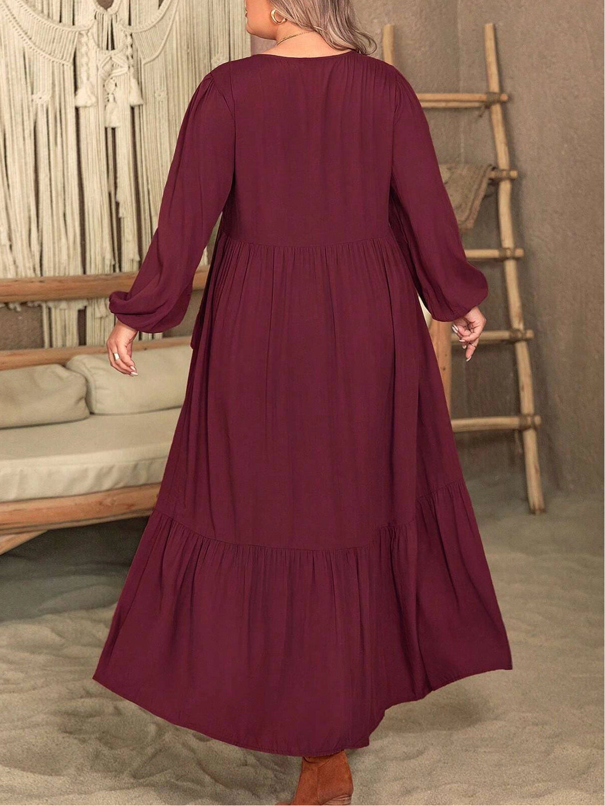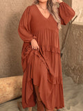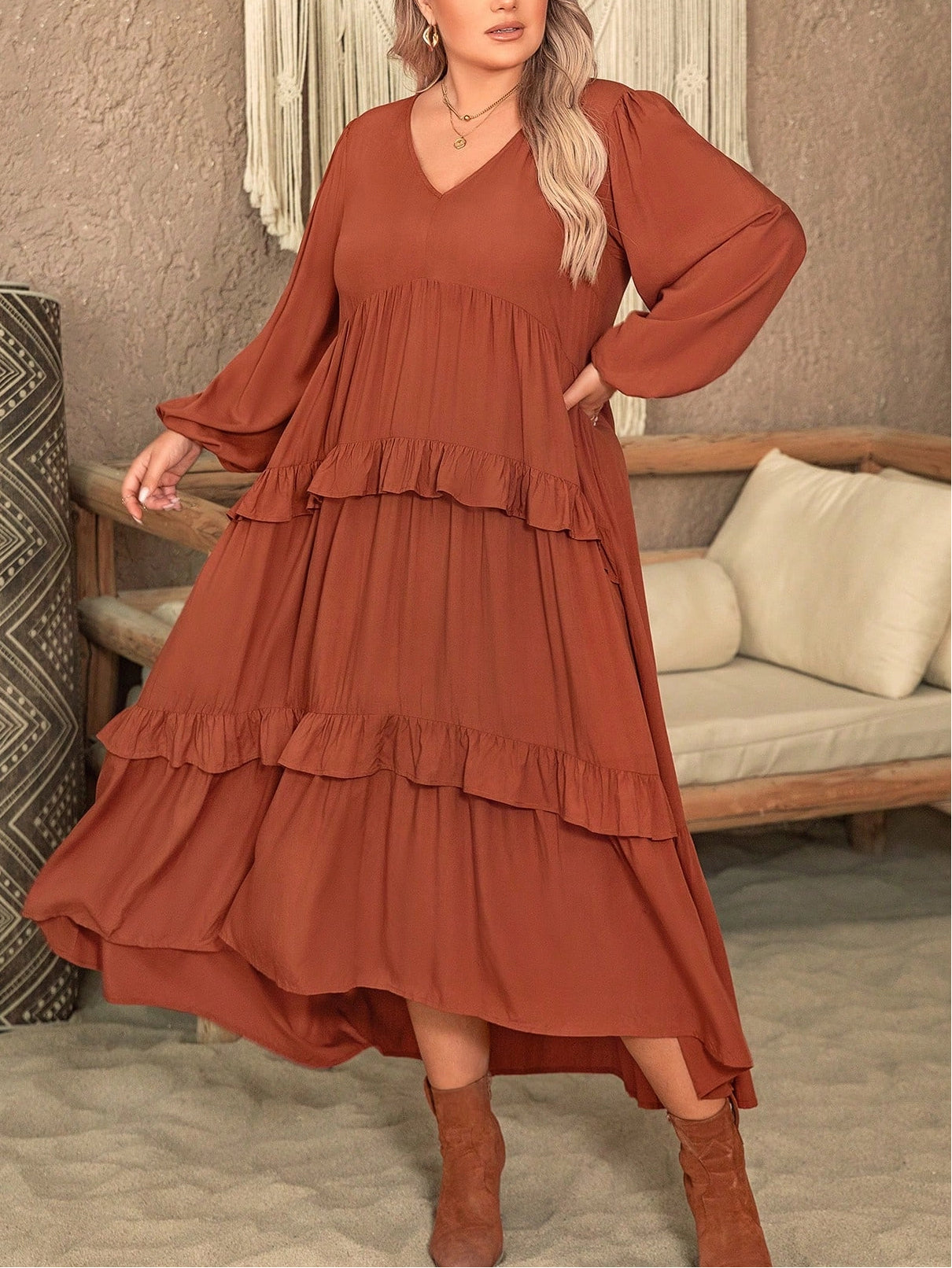 Elevate your wardrobe with this women's V-neck solid color long-sleeved dress, featuring elegant layered ruffles for a chic touch. Enjoy effortless style and comfort—buy two and receive free shipping.