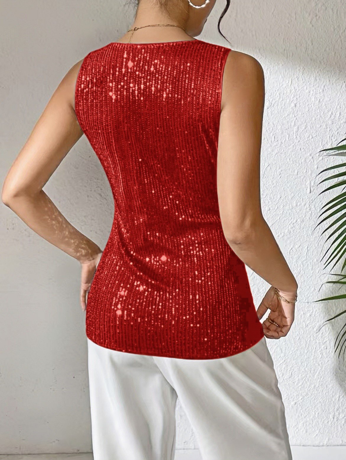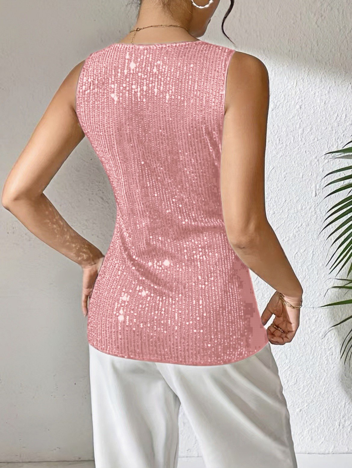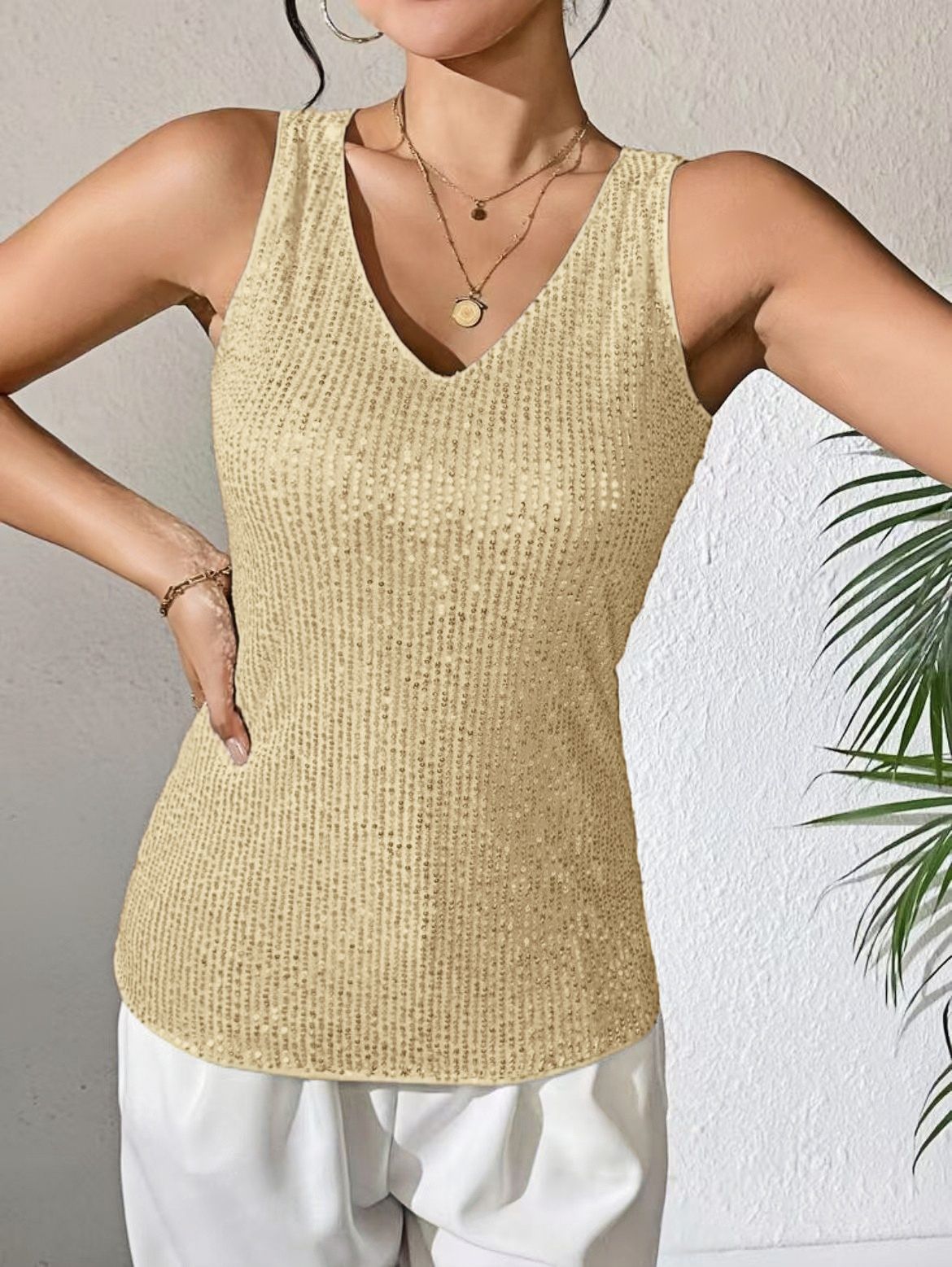 2025 Europe and the United States spring and summer must enter!Sexy V-Neck Sequin T-Shirt Vest – The Ultimate Cross-Border Fashion Hit!