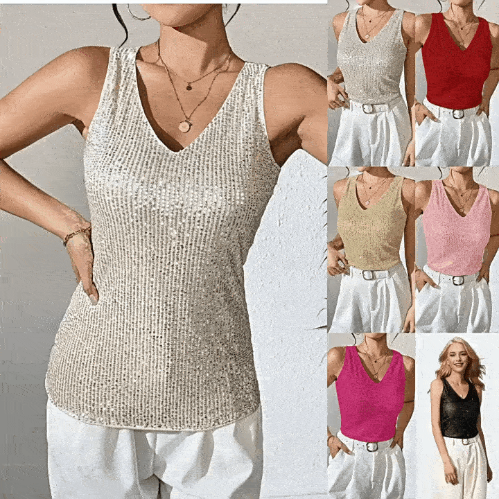2025 Fashion and Comfort Sexy V-Neck Sequin T-Shirt Vest