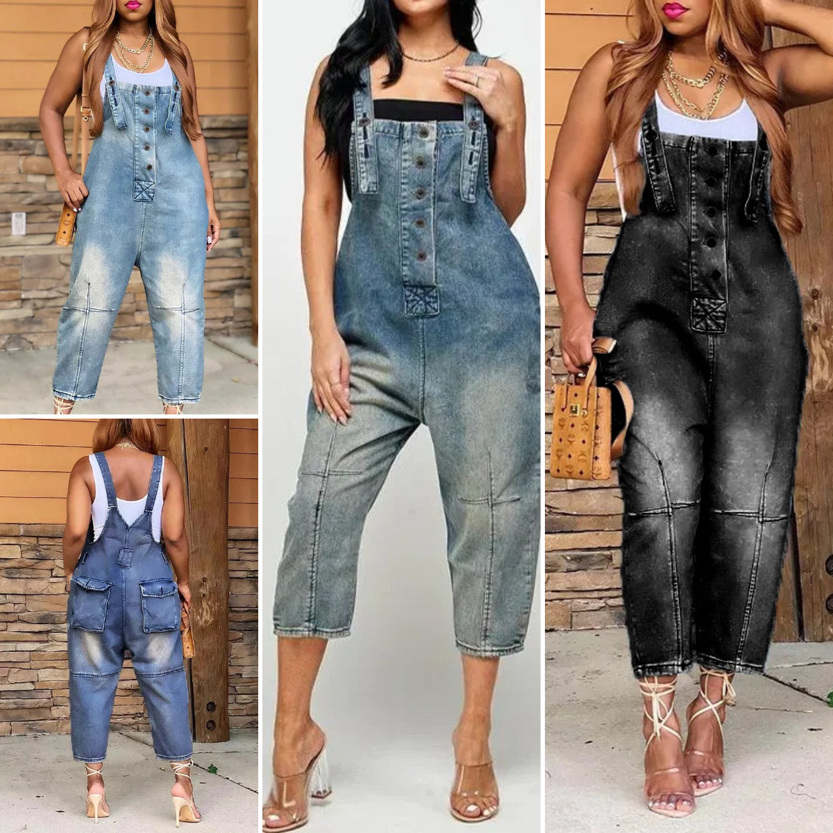 2025 Fashion Casual Designer Style Denim Suspender Jumpsuit