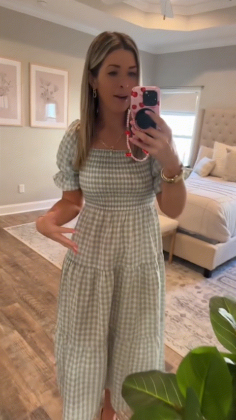 2025 Summer Plaid Tiered Square Neck Puff Sleeve Ruffle Flowy Midi Dress