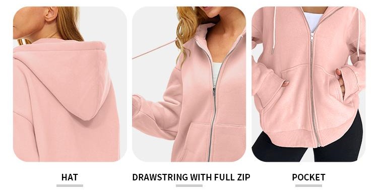 2025 Winter Womens Zip Up Hoodies Oversized Sweatshirts