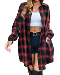 2025 Women's Button Down Flannel Shirts Plaid Shacket Collared Long Jacket Coats