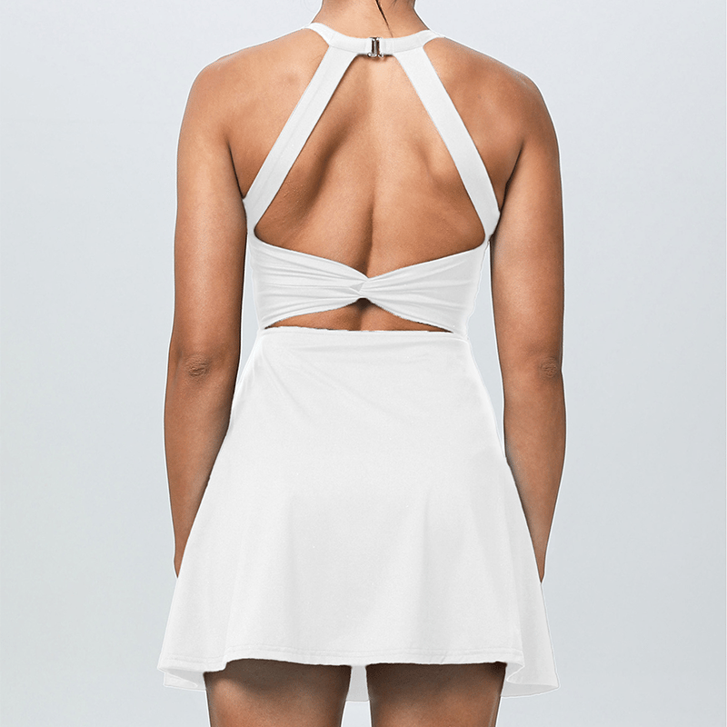 Confidently showcase your beautiful back curves while moving with the Airy Backless Twisted Cool Touch Dance Active Dress—a perfect blend of fashion and comfort.
