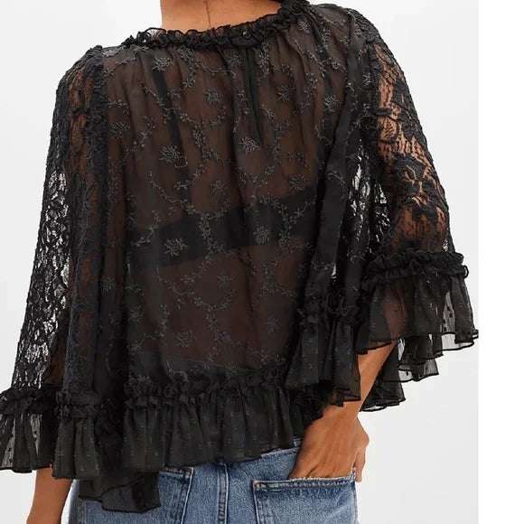 Darling as ever, this all-lace top is featured in a unique cape silhouette for endless unexpected outfits.