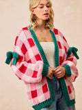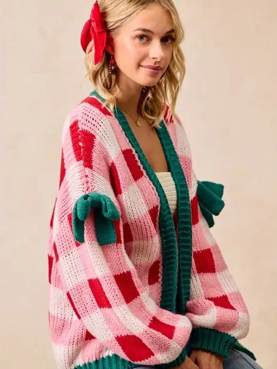 Bow Sleeve Checkered Cardigan