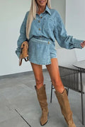 Buttons Irregular Turndown Collar Long Sleeve Two Pieces
