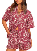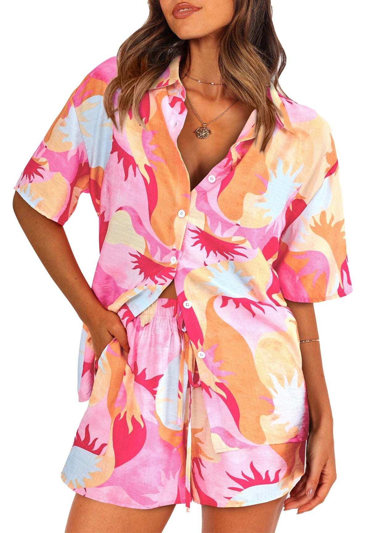 Casual Printed Beach Short Sleeve Tops Lounge Shorts Two Piece Sets