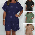 Casual Printed Cotton-Linen Short Sleeve Shorts Set