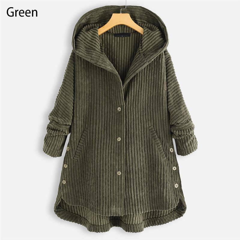 Casual Solid Color Thickened Hooded Button Coat