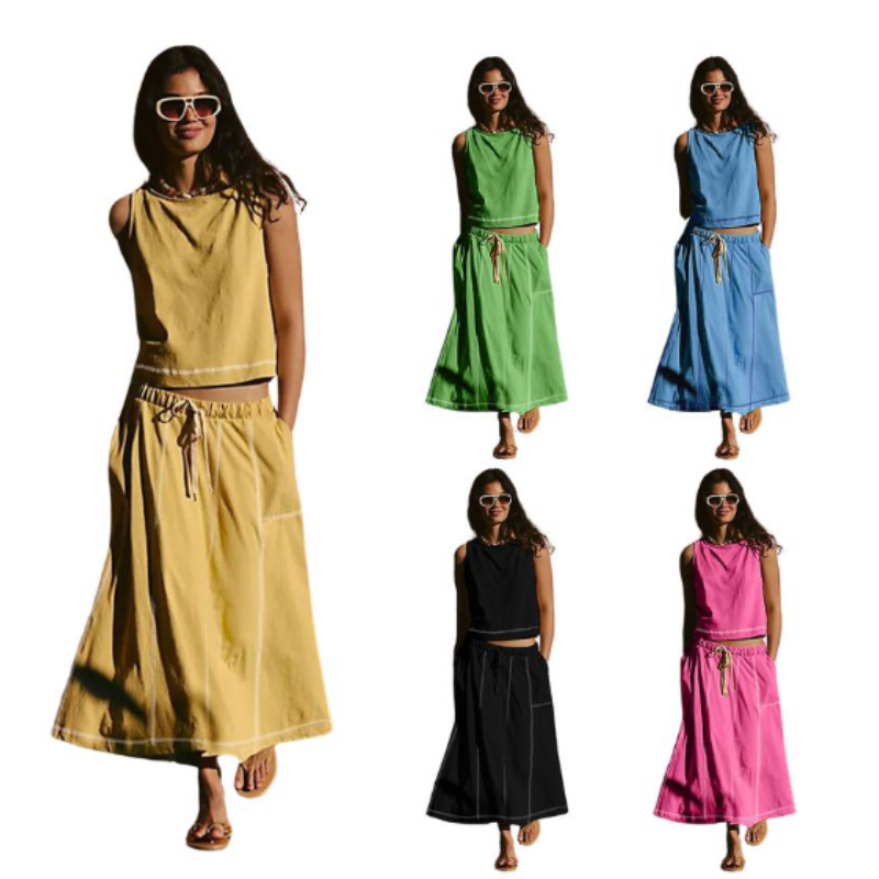 Package Includes: 1×Casual Tank & Maxi Skirt Set