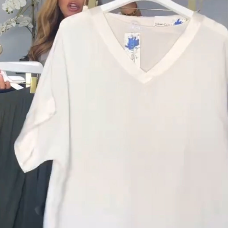MODERN MINIMALIST DESIGN - Crisp V-neck tops pair with flowy pants for a clean, contemporary look. Gray whispers urban cool; white radiates coastal calm. Dress it up with sandals or down with sneakers—your vibe, your rules.