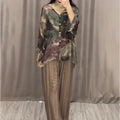 Package Includes: 1×Casual V-neck Printed Three Piece Suit