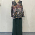 CONVENIENT CLOSURE AND DETAILS - Designed for ease of wear, this suit features a button closure for a secure and adjustable fit. The long sleeves and long pants provide ample coverage and warmth, making it suitable for year-round wear. The V-neck collar adds a touch of sophistication, while the floral tie-dye pattern adds a playful twist to the classic silhouette.