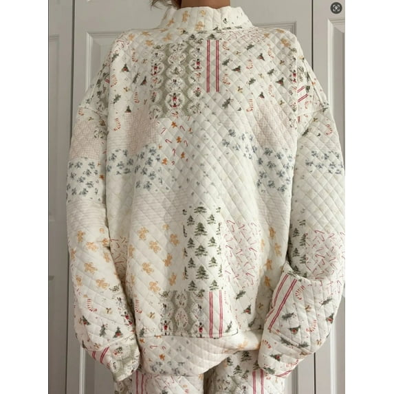- 1 PC * Christmas Holiday Quilted Mockneck Sweatshirt