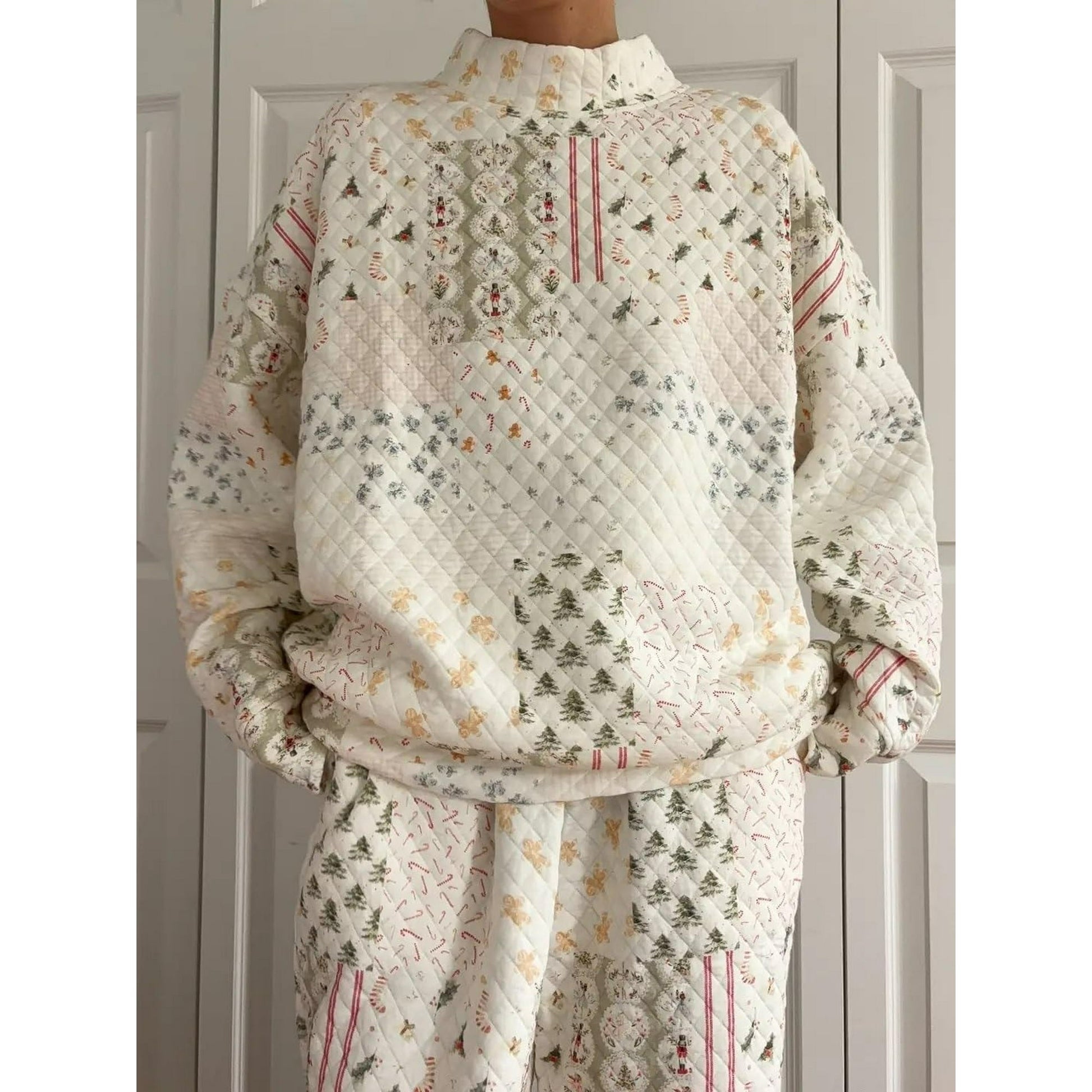 Christmas Holiday Quilted Mockneck Sweatshirt