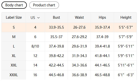 SIZING DETAILS