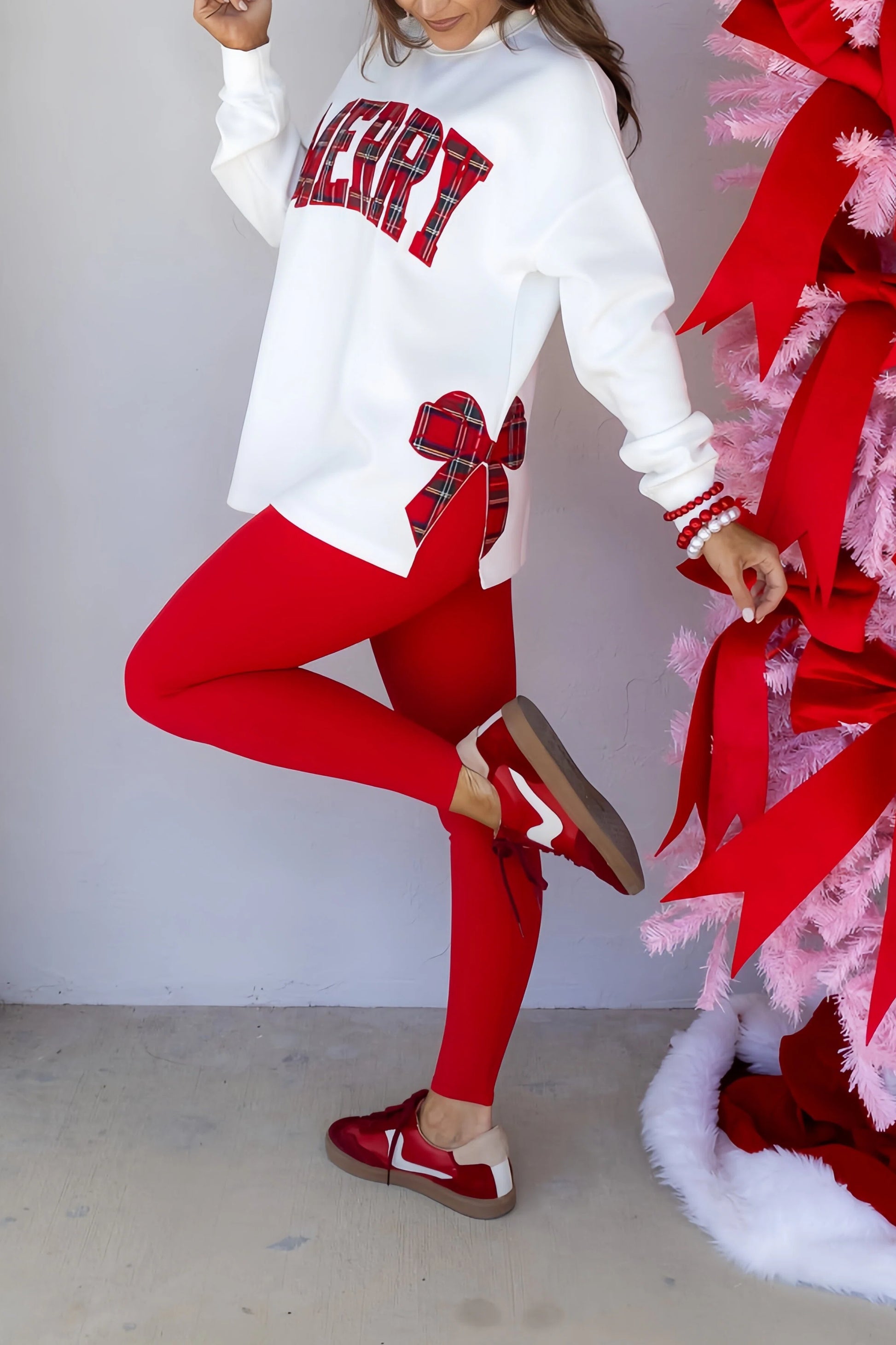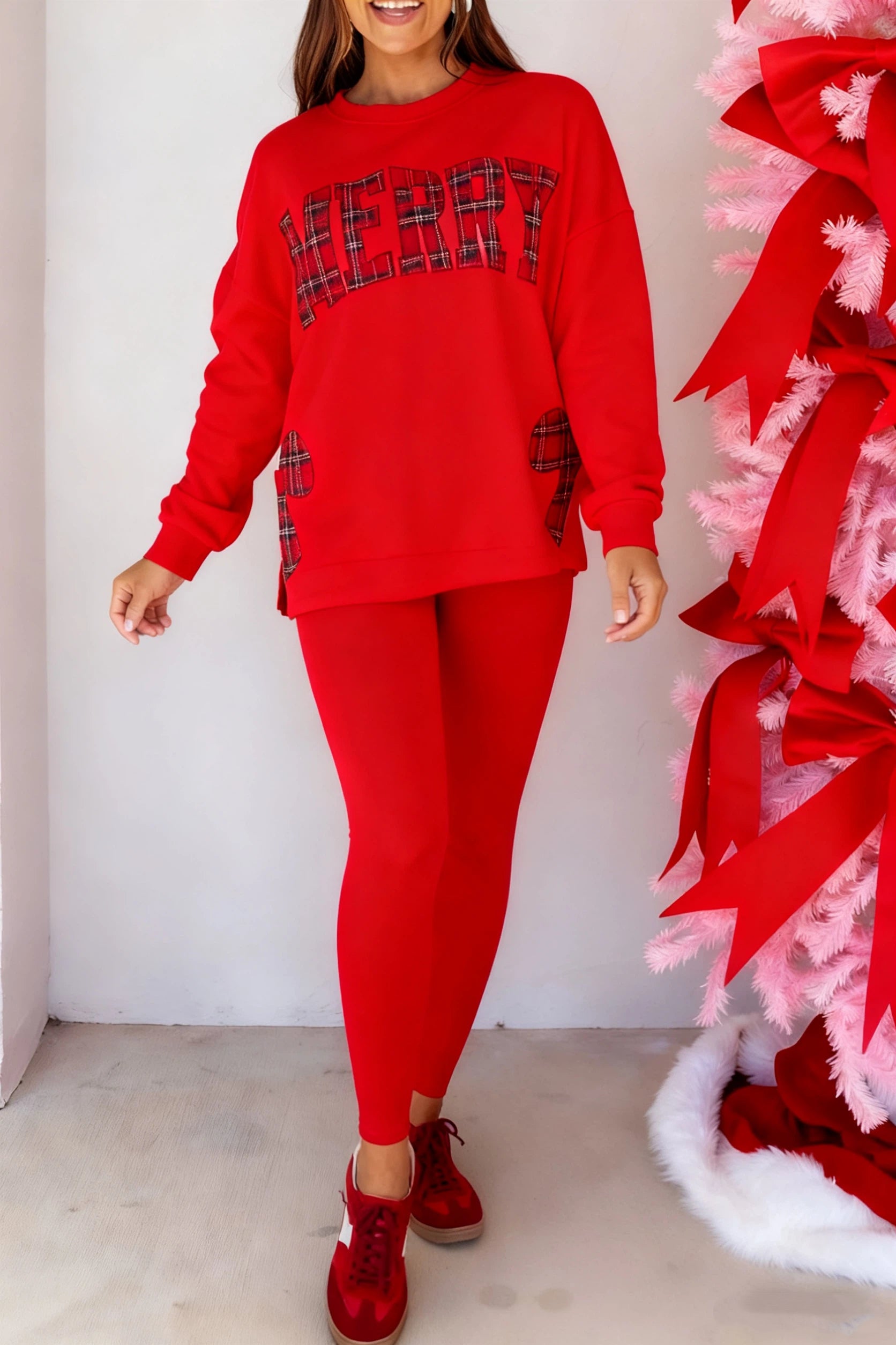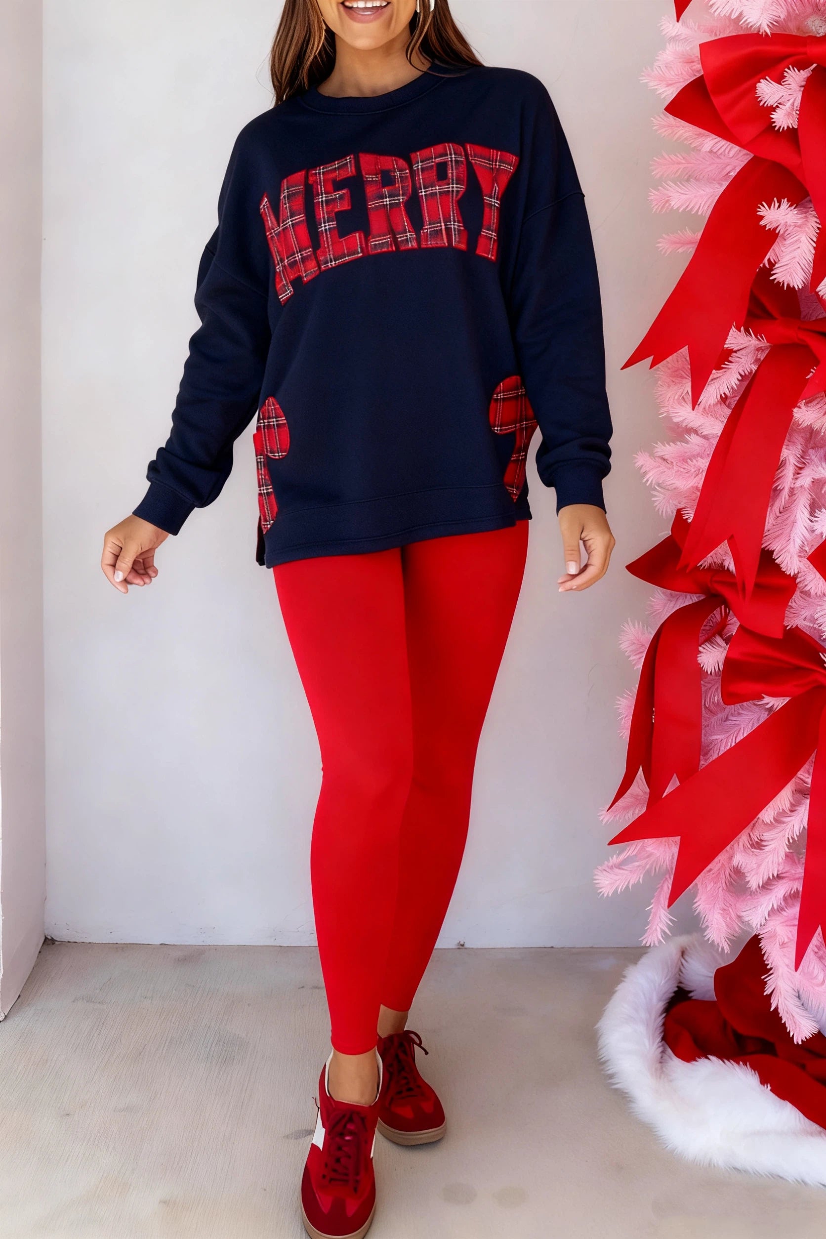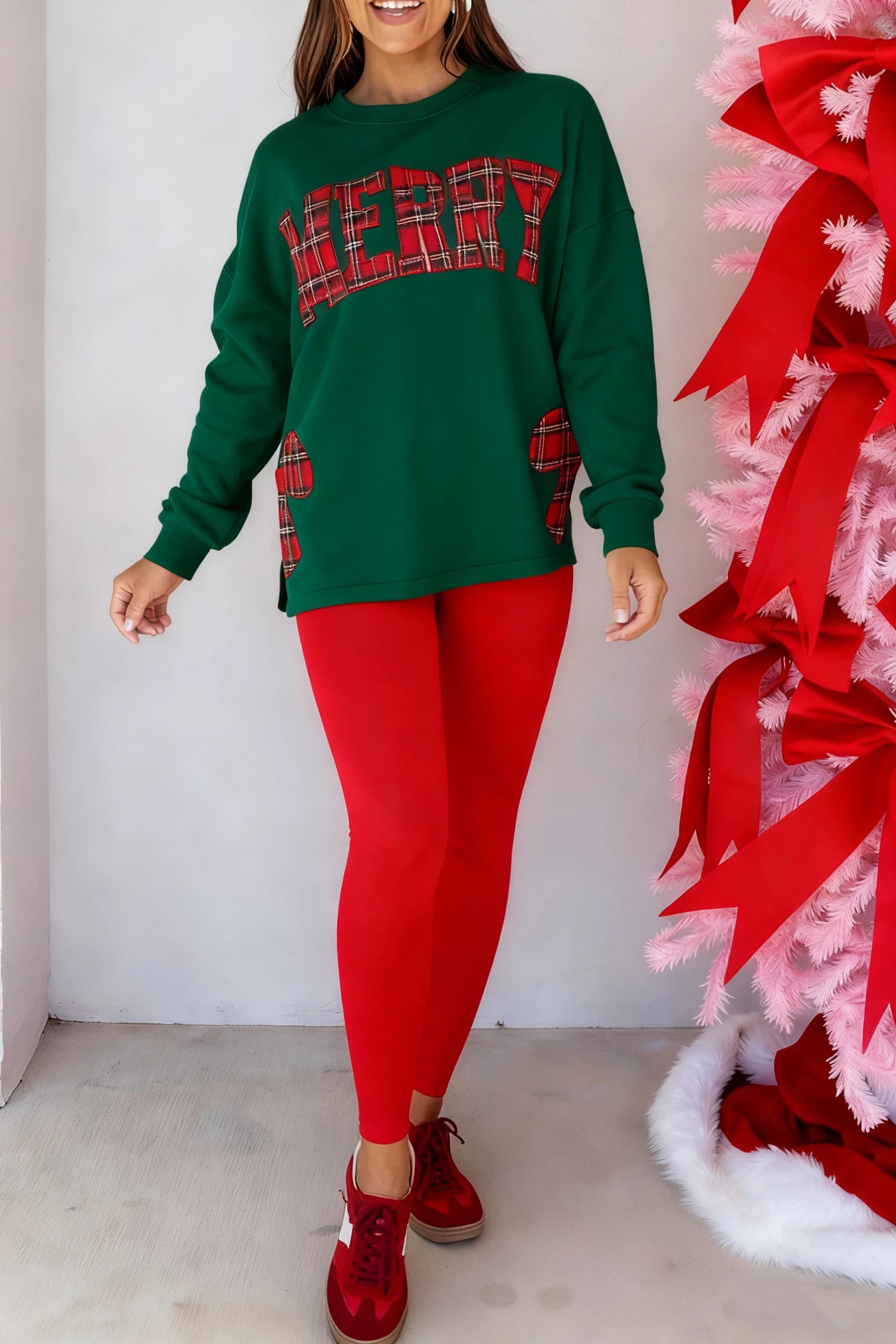 Celebrate the season in style with this Christmas plaid letter sweatshirt. Crafted for comfort and warmth, it features festive plaid lettering, perfect for holiday gatherings or cozy winter days. Elevate your wardrobe with a classic Christmas touch.