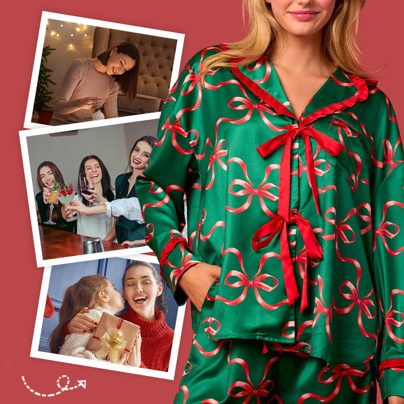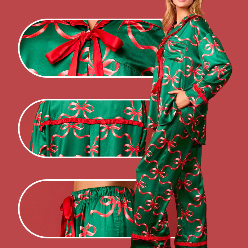 Imagine waking up to a cozy Christmas morning in these charming bow tie pajamas, ready to spread holiday cheer all day long.
