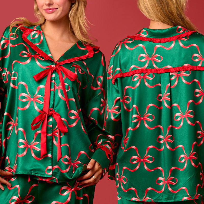 Christmas Printed Bow Tie 2 Piece Pajama Set