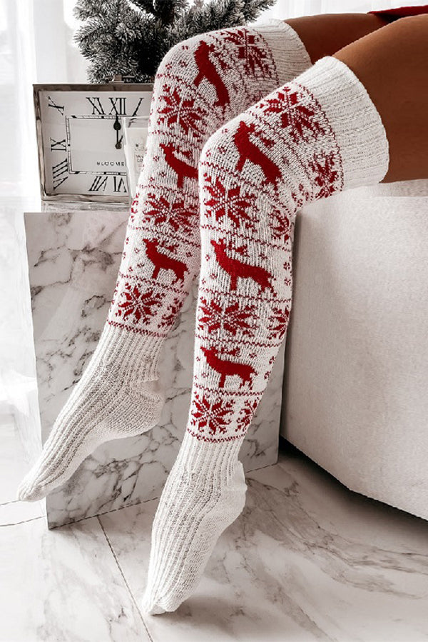 Christmas Snowflake Elk Long Knit Over-the-Knee Pile Socks