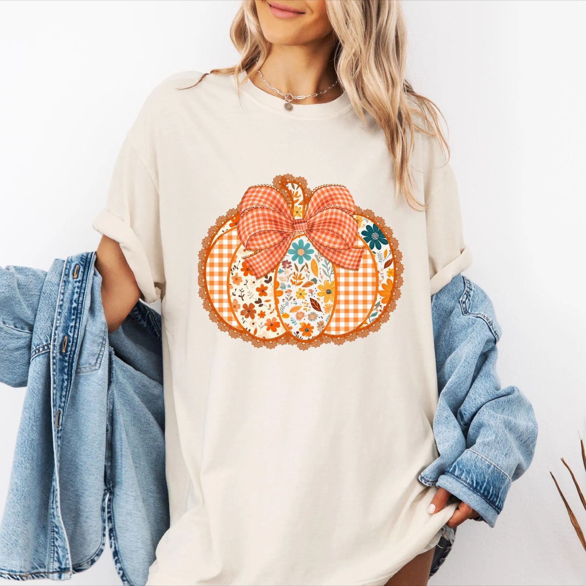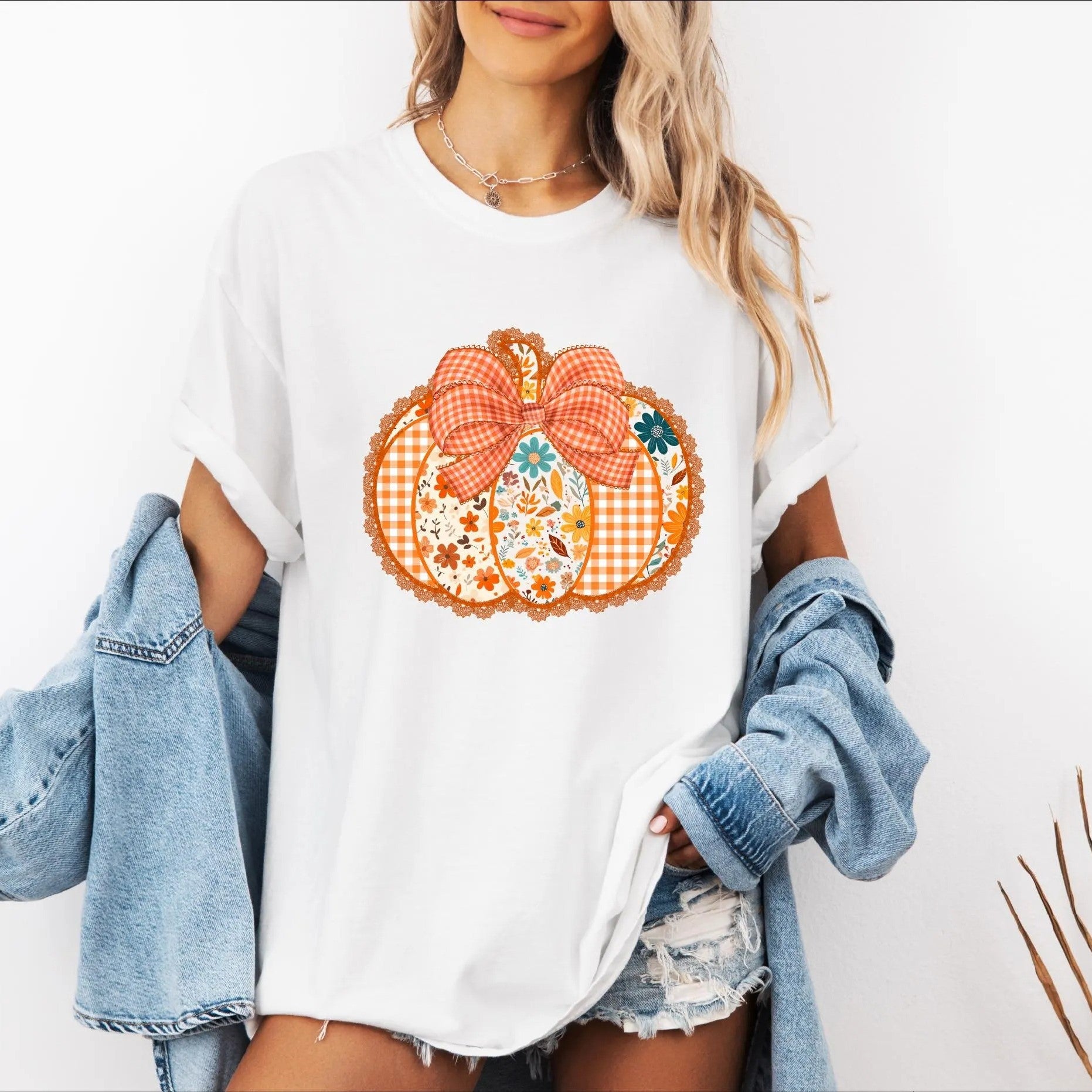 Ready to embrace fall in style? Our Boho Floral Pumpkin T-Shirt blends retro gingham, delicate lace, and boho florals into one irresistible autumn staple — perfect for anyone who wants to wear the season’s charm from pumpkin patches to cozy cafes.